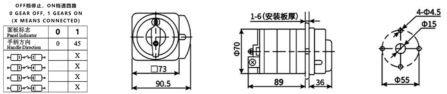 Home / Product / Universal Changeover Switch / HZ12 Power Control Changeover Switch / ZHUCO HZ12-25/04 0-1 Two-Position Two-Section Power Cut-Off Changeover Switch