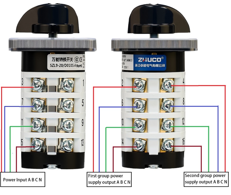 Home / Product / Universal Changeover Switch / SZL9 Multi-function Power Changeover Switch / ZHUCO SZL9-20/D1050.4 20A/4P Four-Pole Three-Position 102 Changeover Switch