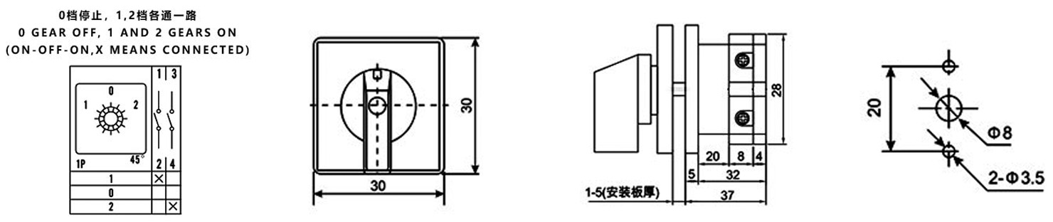 Home / Product / Universal Changeover Switch / SZW26 Multi-function Changeover Switch / ZHUCO SZW26-10/D101.1 1-0-2 Three-position single-section changeover switch