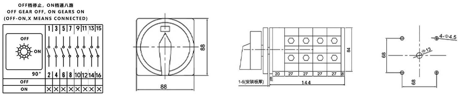 Home / Product / Universal Changeover Switch / SZW26 Multi-function Changeover Switch / ZHUCO SZW26-125/4GS OFF-ON two-position four-section power switch