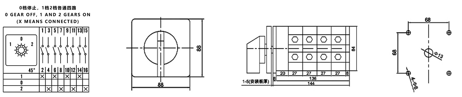 Home / Product / Universal Changeover Switch / SZW26 Multi-function Changeover Switch / ZHUCO SZW26-125/D404.4 1-0-2 Three-position four-section high-current changeover switch