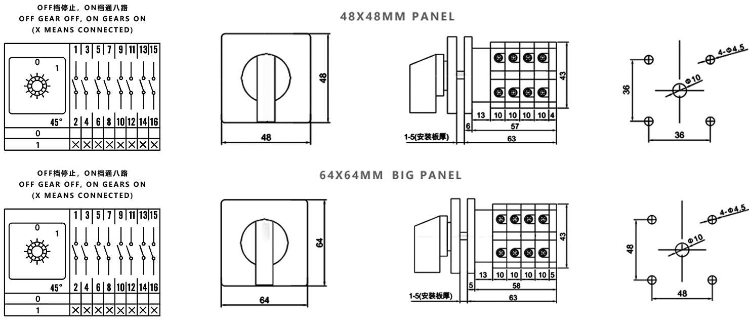 Home / Product / Universal Changeover Switch / SZW26 Multi-function Changeover Switch / ZHUCO SZW26-20/C08.4 OFF-ON Two-position five-section On/Off Switch