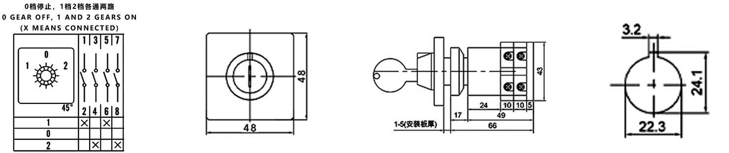 Home / Product / Universal Changeover Switch / SZW26 Multi-function Changeover Switch / ZHUCO SZW26-20C/D202.2Y Three-position two-section lockable single-hole mounting changeover switch