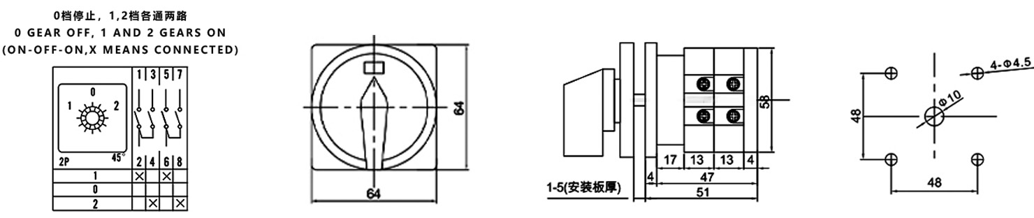 Home / Product / Universal Changeover Switch / SZW26 Multi-function Changeover Switch / ZHUCO SZW26-32 D202.2 1-0-2 Three-position two-section changeover switch