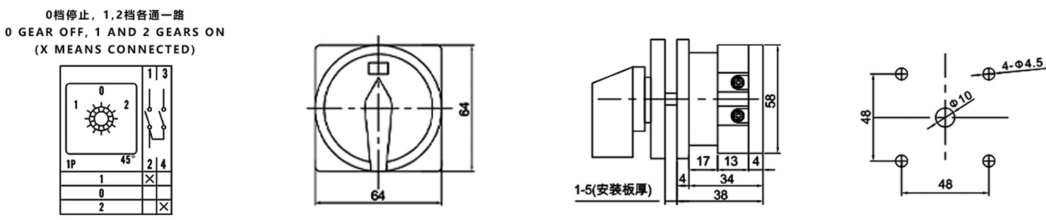 Home / Product / Universal Changeover Switch / SZW26 Multi-function Changeover Switch / ZHUCO SZW26-324GS OFF-ON Two-position four-section power switch