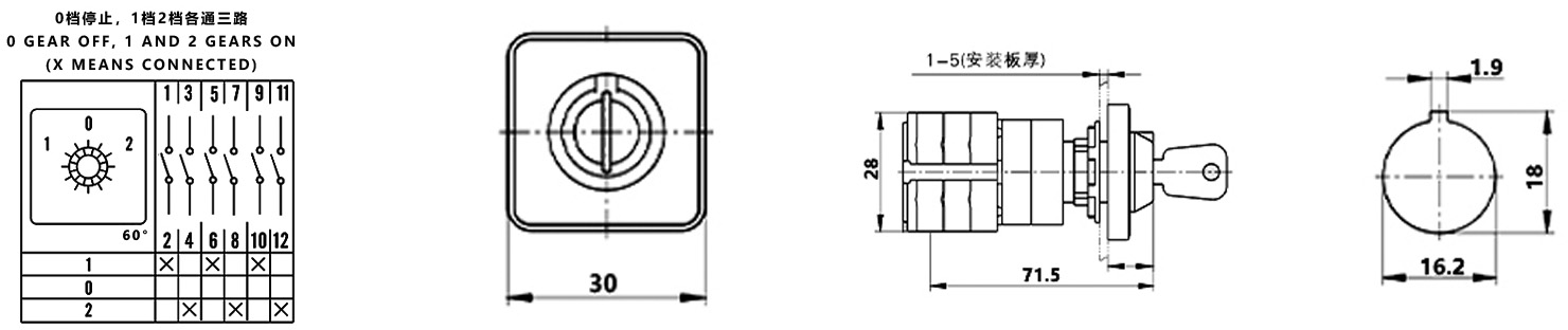 Home / Product / Universal Changeover Switch / SZW26 Multi-function Changeover Switch / ZHUCO SZW26X-10C/D303.3Y 1-0-2 Three-position three-section compact locking single-hole mounting changeover switch